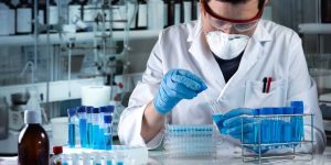 researcher holding tube samples in the chemical lab / scientist working with samples in the research laboratory
